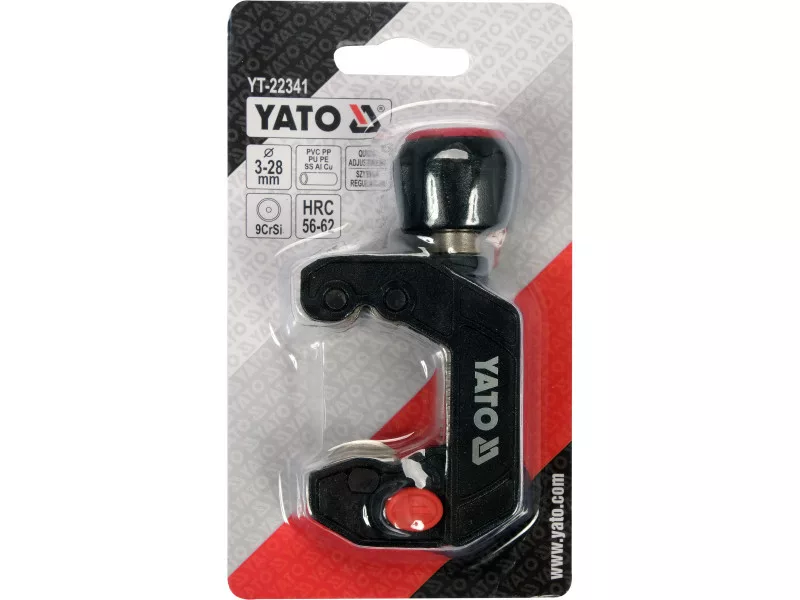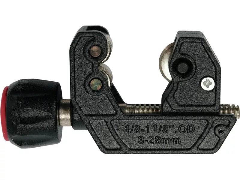 A quick-adjusting cutter designed for copper tubing, thin-walled brass and aluminum tubing, and plastic tubing. Allows quick adjustment to pipe diameters from 3 mm to 28 mm.