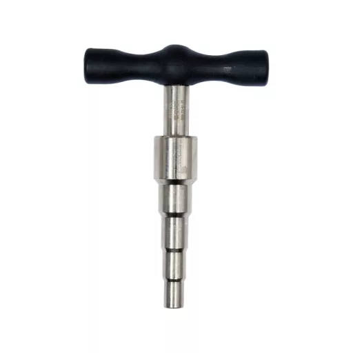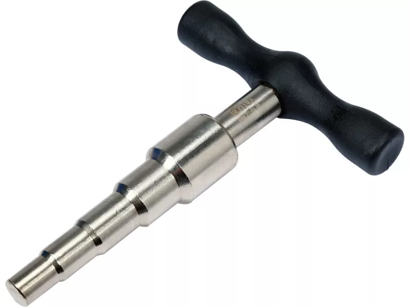 Calibrator useful when working with PEX pipes. When pipes are cut, their profile is flattened. Installation of fittings on a pipe with a flattened profile can lead to leaks and very expensive repairs.