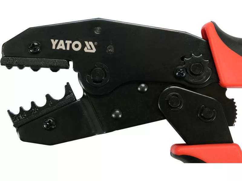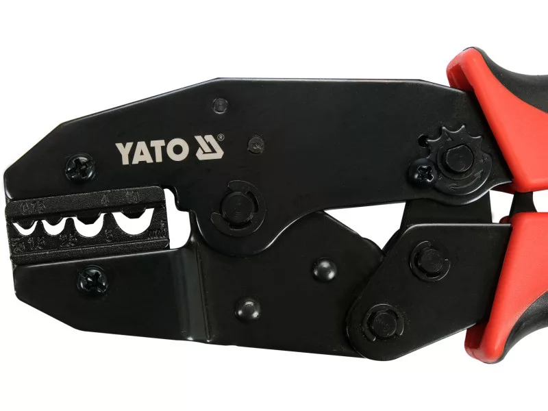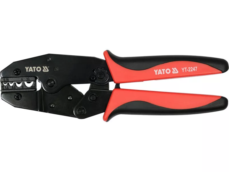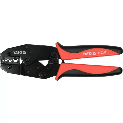 The YT-2247 pliers for crimping crimp connectorsós, with a blackened surface to protectór against corrosion and plastic handle caps. The ratcheting mechanism allows quick and precise clamping without excessive force.