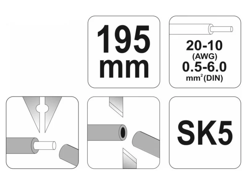 - mechanism for fast and automatic stripping of insulation from both flat and round conductors from 0.5 mm2 to 6.0 mm2