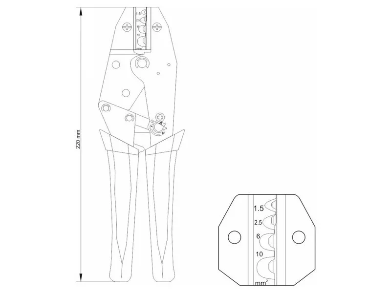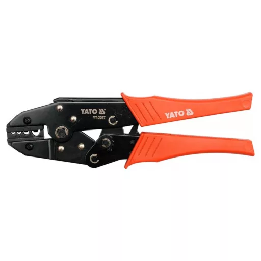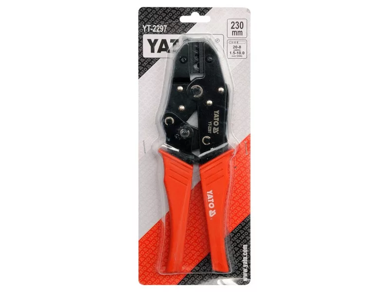 The YT-2297 pliers for crimping crimp connectorsós, with a blackened surface thatós corrosion protection and plastic handle caps. The ratcheting mechanism allows quick and precise clamping without excessive force.