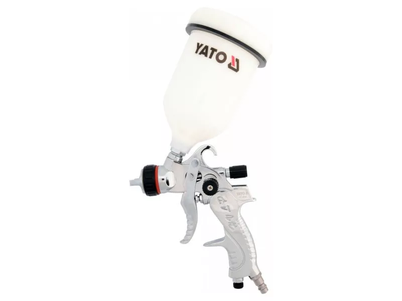 The spray gun is used to perform paint work. The factor necessary for the proper operation of the gun is compressed air. Paint from the gun tank and compressed air supplied to the gun, form a mixture of paint particles and air at the outlet of the gun nozzle.
