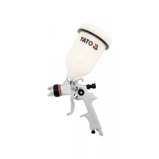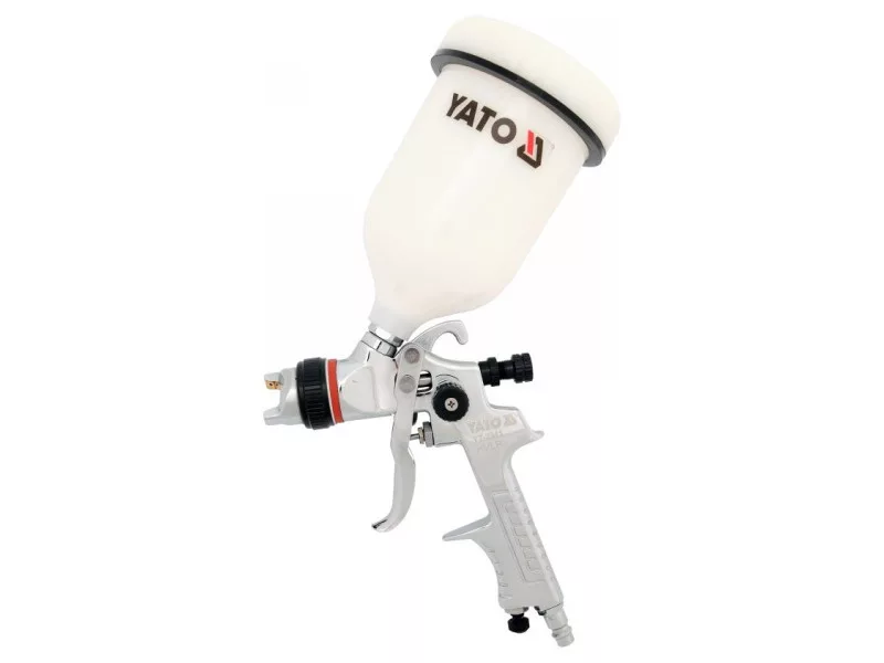 The spray gun is used to perform paint work. The factor necessary for the proper operation of the gun is compressed air. Paint from the gun tank and compressed air supplied to the gun, form a mixture of paint particles and air at the outlet of the gun nozzle.
