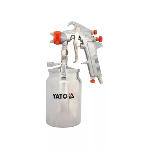 The spray gun is used to perform paint work. The factor necessary for the proper operation of the gun is compressed air. Paint from the gun tank and compressed air supplied to the gun, form a mixture of paint particles and air at the outlet of the gun nozzle.