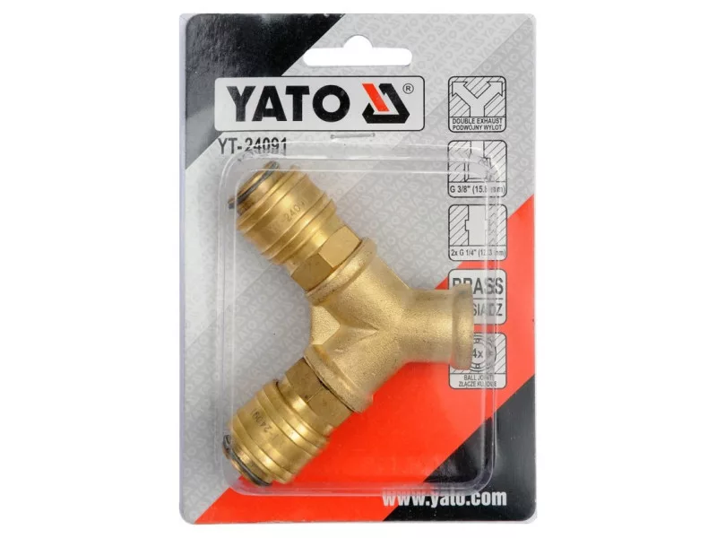 Brass branch 2 x air connector 1/4 ". Internal thread G3/8". Fastening carried out through 4 steel balls.
