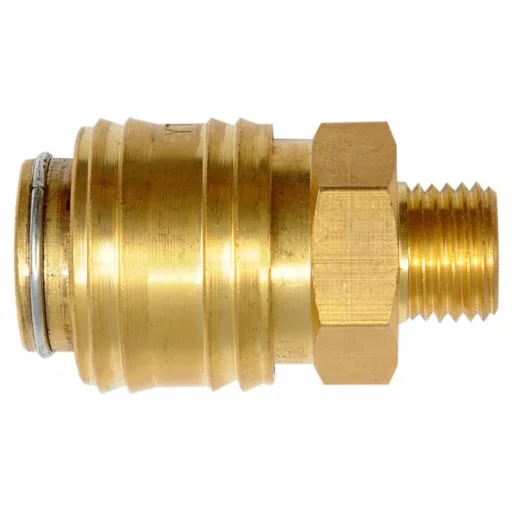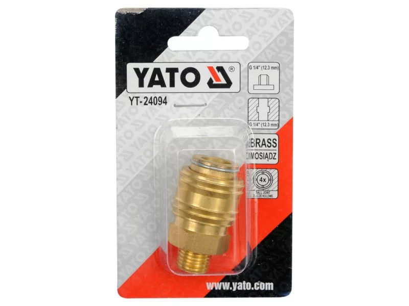 Brass pneumatic quick coupling. External thread G1/4 ". Air connector 1/4". Fastening carried out through 4 steel balls.
