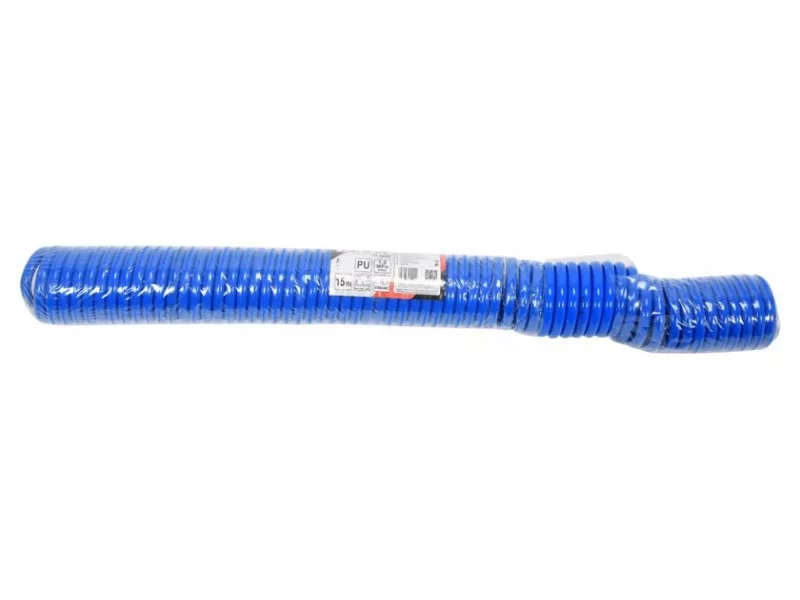 Professional spiral pneumatic hose terminated with quick disconnects. The 8,0x12 mm hose with a length of 15 meters is made of resistant polyurethane. The hose is resistant to low and high temperatures, so it can also be used outside the workshop. The fine coil design saves space, and the factory-installed quick couplings make it an indispensable tool in any workshop or manufacturing plant.