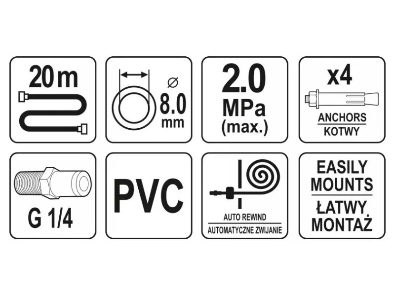 YATO Automatischer pneumatischer Schlauchaufroller 8 mm x 20 m YATO Automatischer pneumatischer Schlauchaufroller 8 mm x 20 m