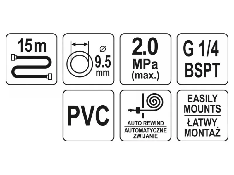 YATO Automatischer pneumatischer Schlauchaufroller 9,5 mm x 15 m
