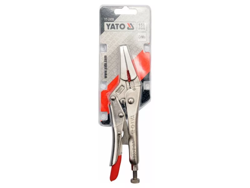 Morse crimping pliers 150 mm long with long jaws. Designed for welding, locksmith and assembly work. They have a screw adjustment of the opening that allows you to adjust the spacing of the jaws depending on the thickness of the material to be gripped.