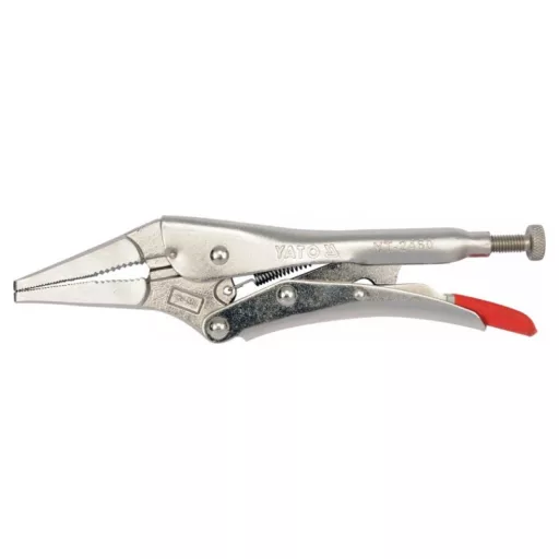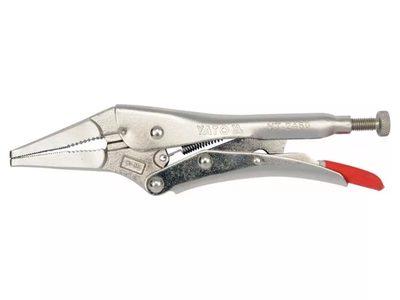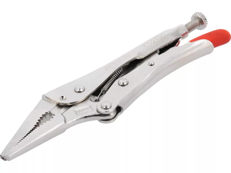 Morse crimping pliers 225 mm long with long jaws. Designed for welding, locksmith and assembly work. They have a screw adjustment of the opening that allows you to adjust the spacing of the jaws depending on the thickness of the material to be gripped.