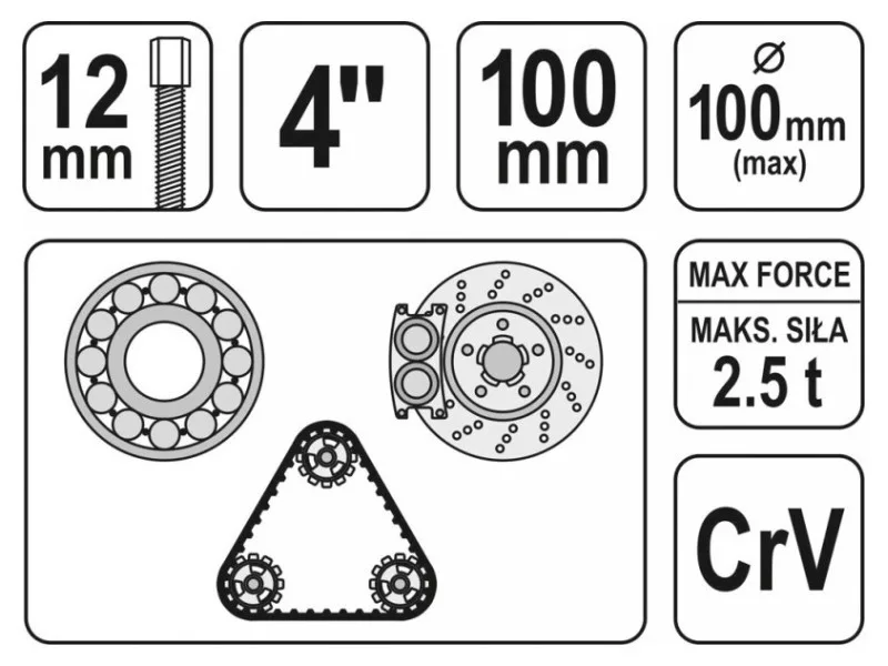 YATO Lagerabzieher 3 Krallen 100 mm CrV