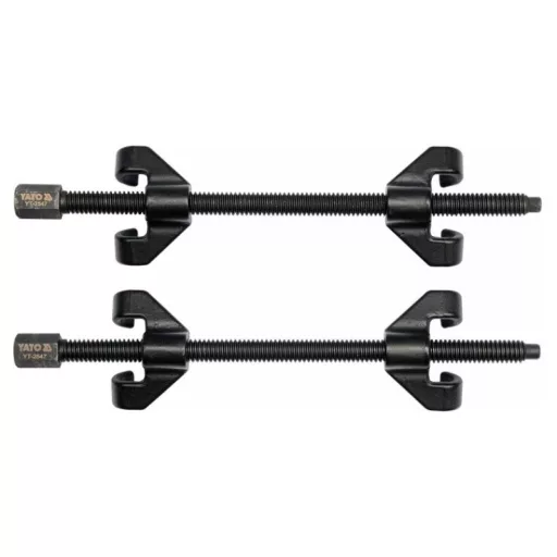 Professional spring pullers with a length of 355 mm designed for safe and convenient installation and removal of springs in MacPherson columns, among others. Indispensable in every car workshop. The work is safe, thanks to specially contoured, two-arm handles.