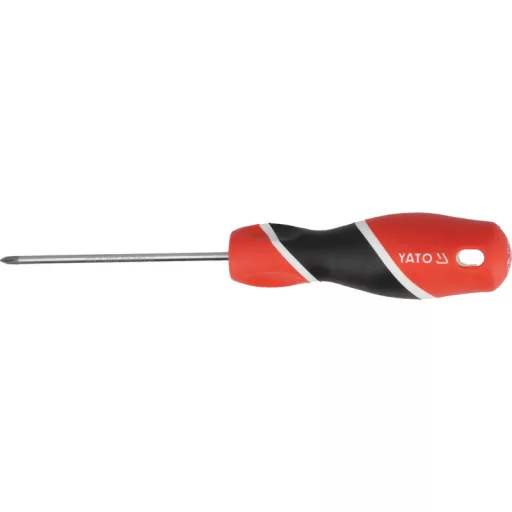 Teutonic screwdriver type pH. Cylindrical heel, made of steel with the S2 symbol, hardened to about 58 HRC. The surface of the satin, the working tip is hardened and sandblasted / strengthens the stability of the grotto /. Handle made of properly selected materials of various hardness. For professional assembly works in various industries.