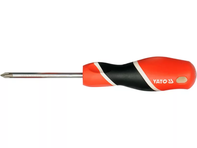 Teutonic screwdriver type pH. Cylindrical heel, made of steel with the S2 symbol, hardened to about 58 HRC. The surface of the satin, the working tip is hardened and sandblasted / strengthens the stability of the grotto /. Handle made of properly selected materials of various hardness. For professional assembly works in various industries.