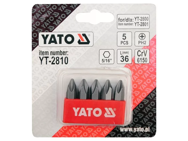 YATO Bitset 5-teilig PH2 36 mm (für YT-2800, YT-2801) CrV