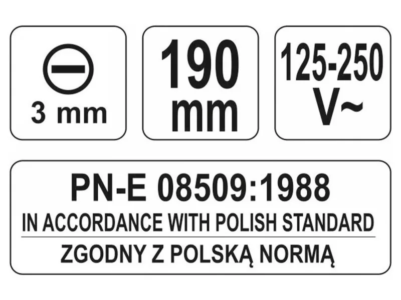 The YT-28300 voltage detector makes it possible to detect AC voltage by contact method, e.g. at a household outlet or at the endsóof wires. The presence of voltage is indicated by the illumination of a neonówki located inside the handle.
