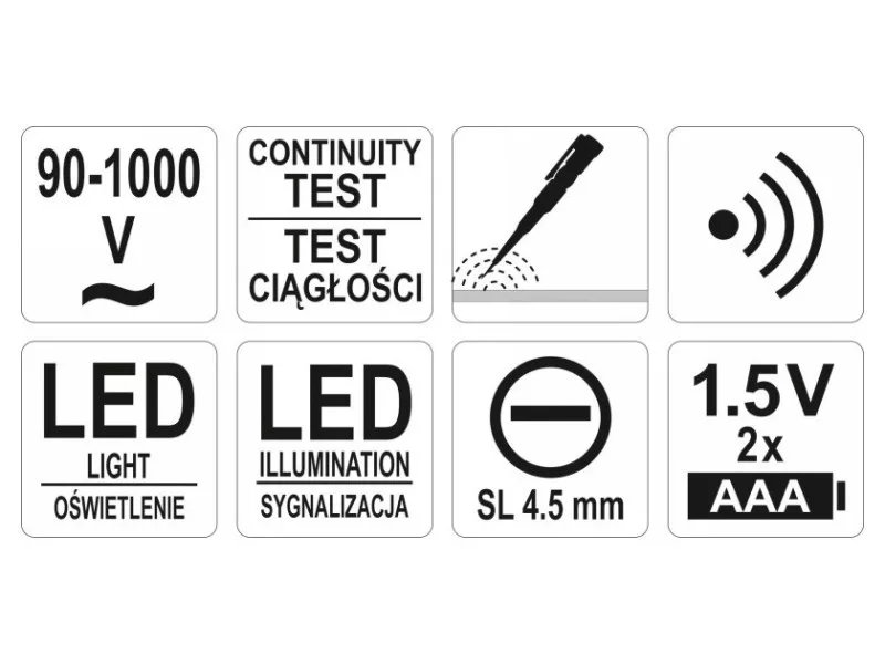 | Voltage - non-contact test | 90-1000 V a.c. |