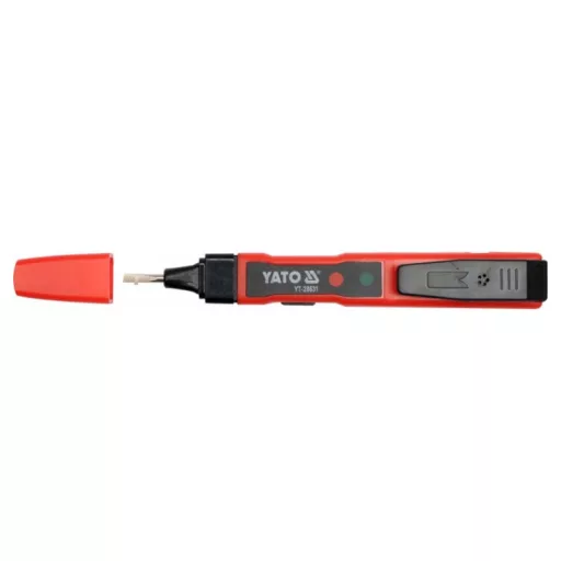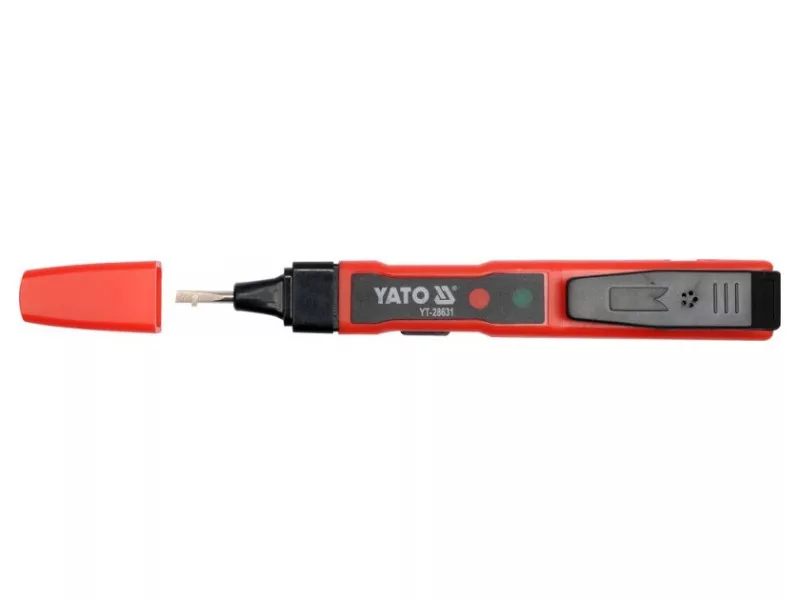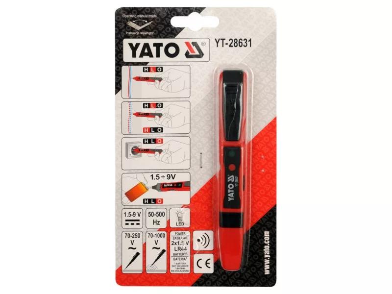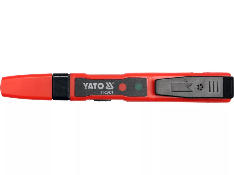 The YT-28631 voltage tester is a universal tester thatós capable of acting, among other things, as a traditional próbówk, as well as a wireless voltage indicator. It makes it possible to determine the presence of electrical voltage, detect AC voltage, for example, under plaster, as well as perform a wire continuity test and check the status of batteries or rechargeableós batteries. The presence of voltage is indicated by the illumination of one of the diodesód located in the tester housing.