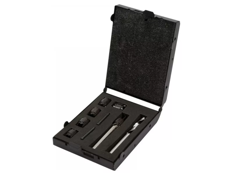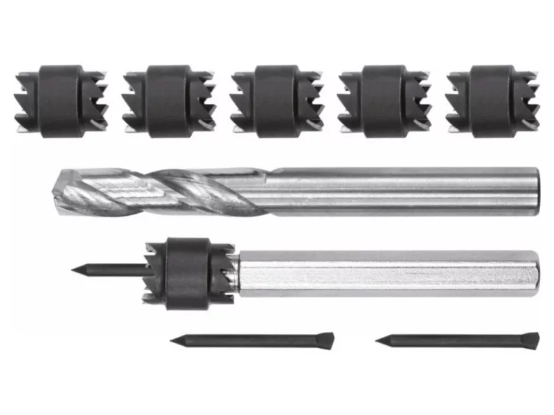 Professional set designed for quick removal of welds, welds, and car body joints. It contains 6 double -sided lace cutters, fixing handle, 3 fixing steps and a special HSS drill 8 mm.