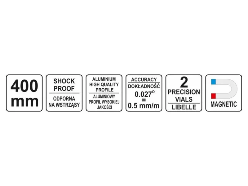 Magnetic spirit level made of stable aluminum profile l-400 mm