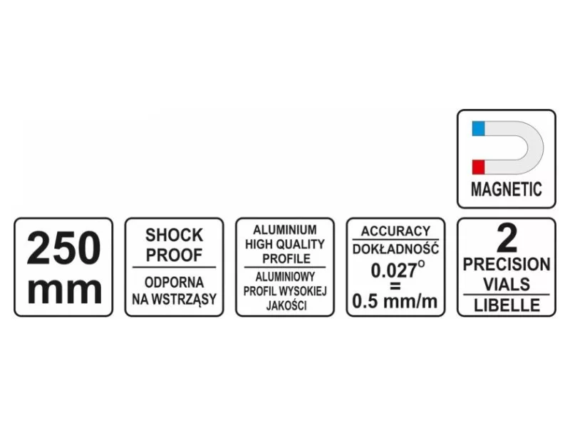 • the level's surface is protected by a layer of powder-coated paint