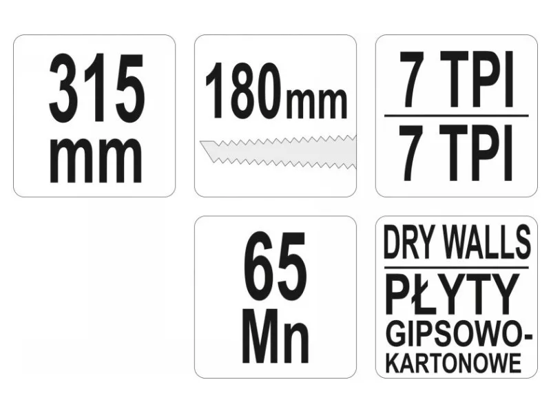 - splitting 7 TPI optimal for fast cutting of plasterboard