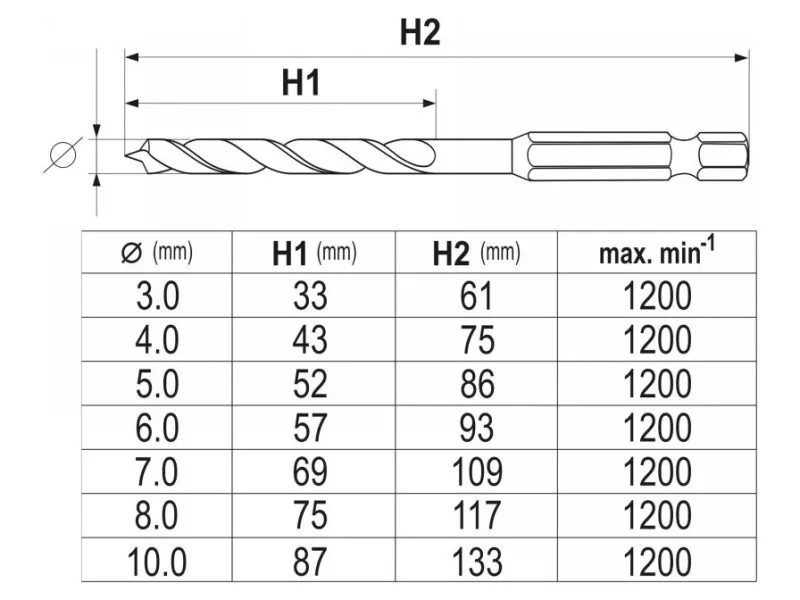 - set of 7 drill bits in sizes: 3, 4, 5, 6, 7, 8, 10 mm