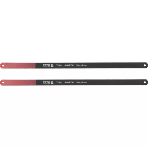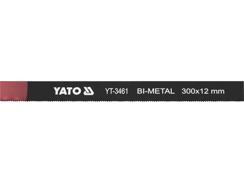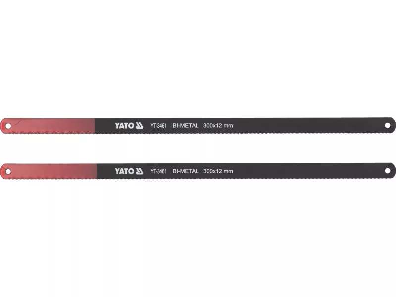 Narrow one -sided metal cutting blade 300 x 12 x 0.6 mm. Made of special M2 and 6150 steel connected in laser technique. 24 TPI scale. Set 2 for cutting bars, tubes, angles and other elements made of steel and colored metals.
