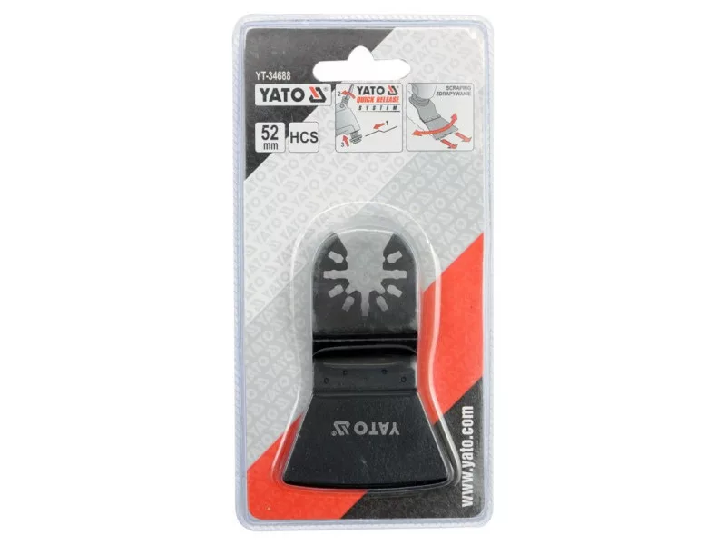 This accessory for the oscillating multifunctional tool is intended for ripping adhesives, mortars, paint coatings and other similar applications. Multifunctional oscillating tools and accessories from the YATO QUICK RELEASE SYSTEM series allow for quick, leap -free replacement of accessories, which significantly facilitates and accelerates work. YATO QUICK RELEASE SYSTEM accessories work best with compatible YATO devices, especially YT-82220. In addition, the YATO QUICK RESLASE SYSTEM accessories are compatible with most devices available on the market, in particular with tools compatible with the Bosch OIS system. YATO QUICK RELEASE System accessories Even used with conventional fixing on the Allen screw facilitate work because they can be fastened after loosening the screw, and not after full unscrewing, as in the case of competition accessories. The multifunctional oscillating tool are the most universal tools on the market. Using a wide range of YATO accessories, you can cut them, cut deeply, sand, remove mortars and adhesives, scratch painting coatings and work in places inaccessible to other devices. All this achieves thanks to the oscillations of high -frequency accessories, thanks to which we maintain full control over the tool (there is no effect of "recoil" typical of rotational cutting) and with a minimal vibration. In the case of multifunctional tools, the equipment determines the usefulness of the device. It expands its capabilities, but also the quality of accessories has the greatest impact on the work efficiency of devices. Convenience is also very important, every user of the device with the possibility of harshly replacement of accessories will appreciate this function.