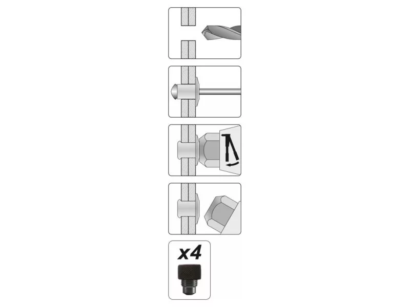 • designed to work with stainless steel, steel, and aluminum rivet nuts