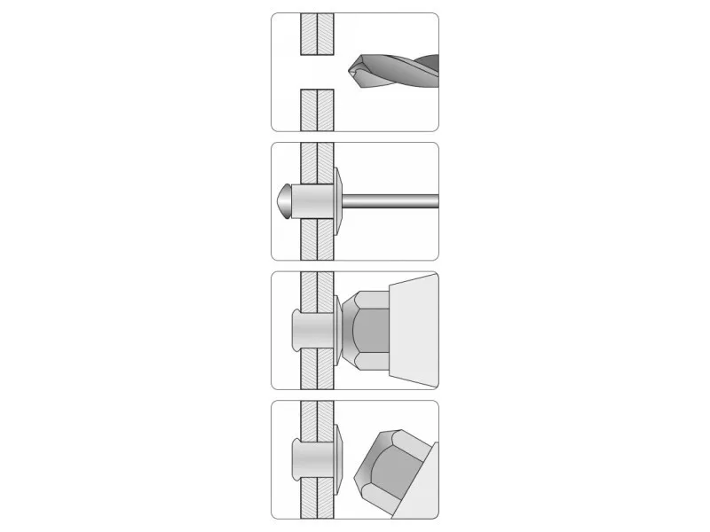 • designed to handle rivets made of steel, stainless steel and aluminum