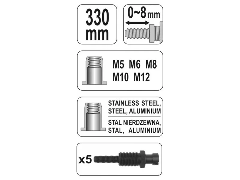 YATO Nietzangen-Set mit Hebel 330 mm (M5-M6-M8-M10-M12)