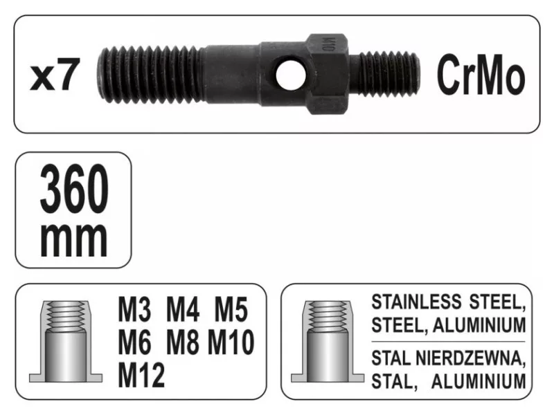 - Heads in sizes: M3, M4, M5, M6, M8, M10, M12. Made of durable CRMO chrome-meter-meter tool steel