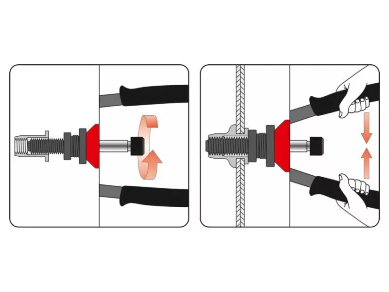 Manual rivetownica for M3-M12 niter. The riveter is intended to make connections of materials using nitonachats. Performs connections of materials with an internally threaded sleeve. This allows you to screw additional elements with metal screws or screws.