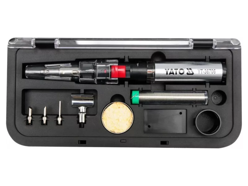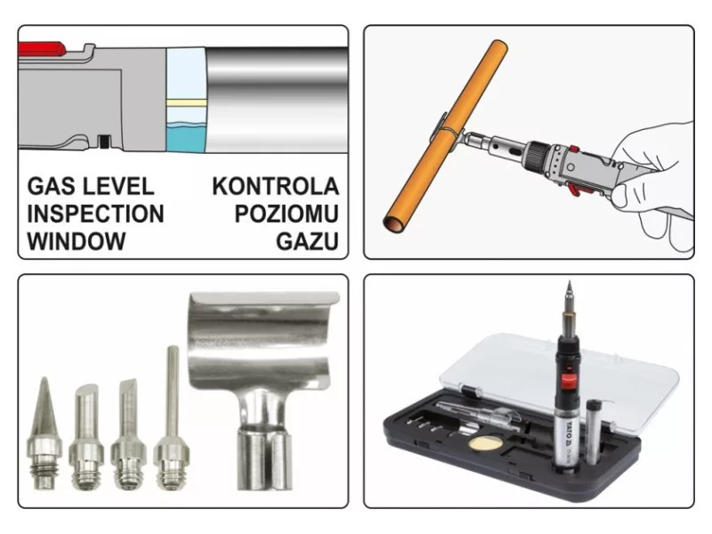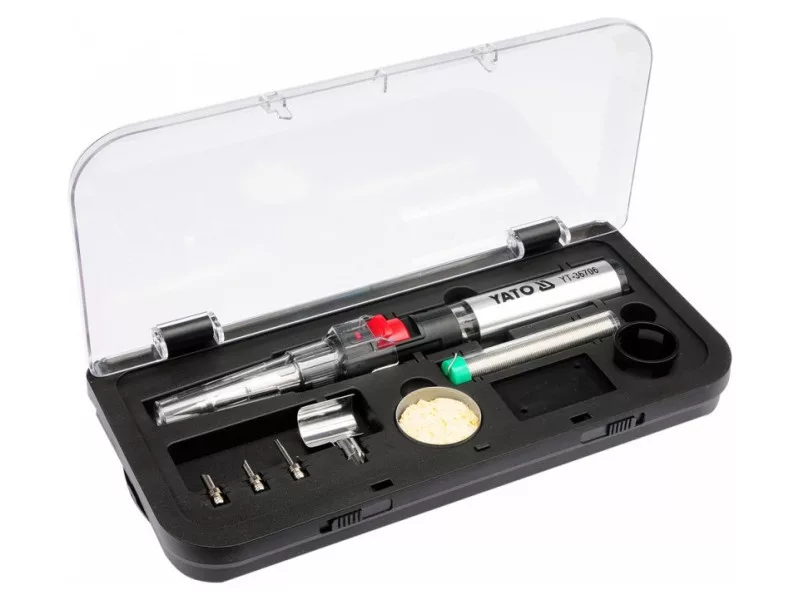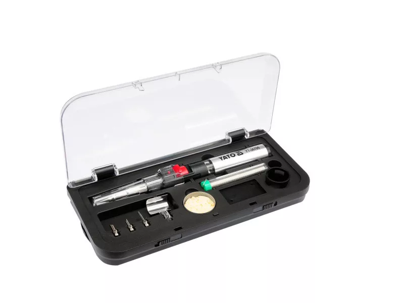 3-in-1 gas soldering iron with piezo ignition kit powered by lighter gas - butane with a power of 30-125W.