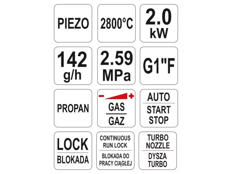 - continuous operation lock - particularly useful during longer work. It allows to lock the burner in the on position without the need to hold the button with a finger