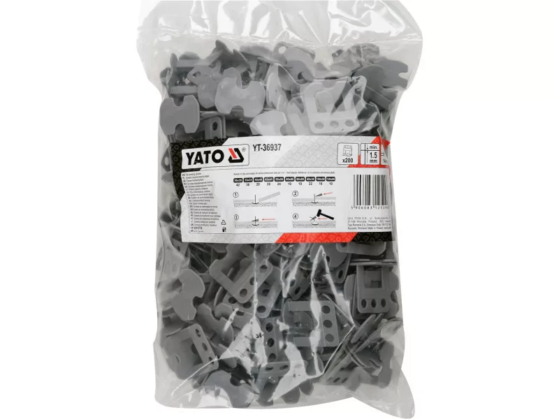 A set of removable clips (gates) for the tile leveling system, which makes it easier and speeds up their laying, as well as helps eliminate surface irregularities. It is intended for ceramic, stoneware, rectified floor and wall tiles of various sizes and thicknesses in the range of 5-14 mm and a minimum joint of 1.5 mm. Made of high-quality plastic.