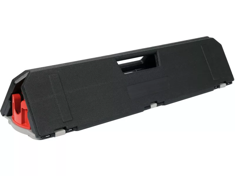 Cutting machine with aluminum base l- 600 mm and folding plastic covers. They serve as side supportsór or, when closed, serve as handles for transportation.