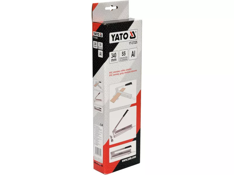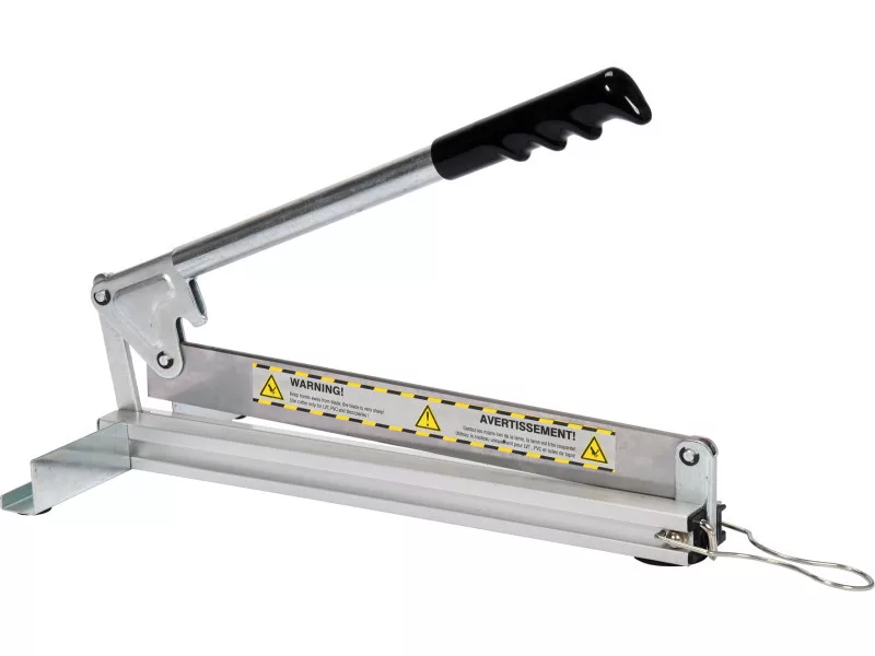 A guillotine for cutting soft and hard flexible materialsów such as PVC floor coverings, siding boards and strips, laminates, vinyl plastics. It is also suitable for cutting strips and boards of similar materialsóas well as leatheróry, rubber, soft plastic, etc. The body of the guillotine is made of aluminum, nón of high-grade hardened steel.