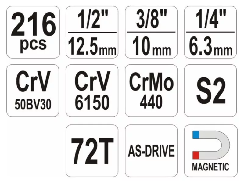 YATO Steckschlüsselsatz 216-teilig 1/4", 3/8", 1/2" CrV YATO Steckschlüsselsatz 216-teilig 1/4", 3/8", 1/2" CrV YATO Steckschlüsselsatz 216-teilig 1/4", 3/8", 1/2" CrV YATO Steckschlüsselsatz 216-teilig 1/4", 3/8", 1/2" CrV