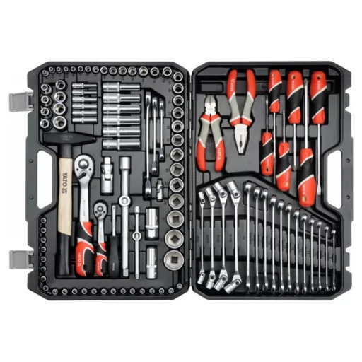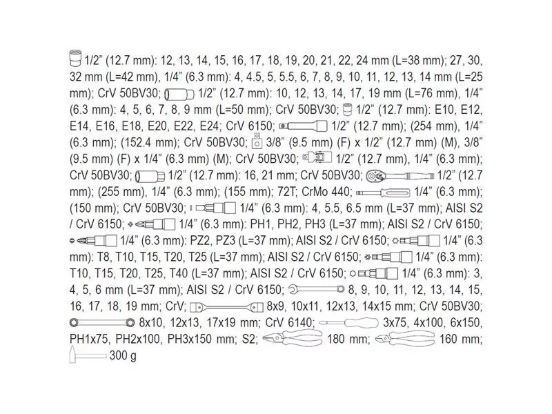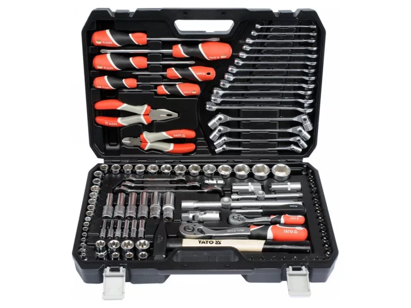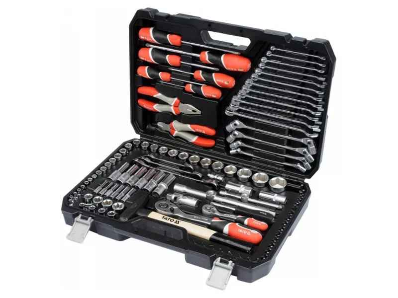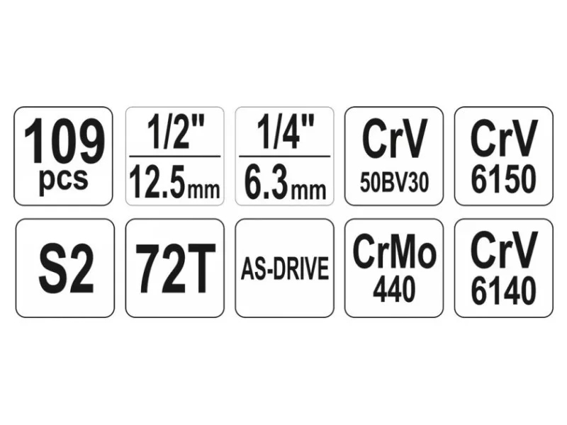 A professional tool set, which was developed for the needs of specialized car and mechanical services. The socket wrenches and the drive of the attachment were made of durable, tool-vanadium steel CRV 50BV3. The attachments were made using the matrix method, and before the hardening process they were calibrated with precise fittings and control devices. The attachments equipped with the AS-Drive system, increasing the maximum moment by 25%, with full protection of the cutter of the caps, the attachment with a two-tone surface finish. The kit also includes bits made of hard S2 steel. The set enables work that requires very high loads and precision, allows you to perform many service activities related to unscrewing and screwing threaded connections of various nominal sizes. Ratches have a triangular handle and 72 teeth (5 degrees working stroke).