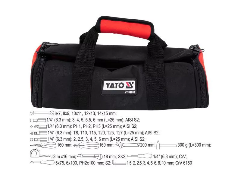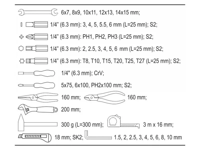 A set with the majority of useful tools for home use, including high-quality products from the YATO brand.