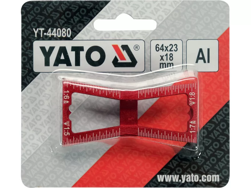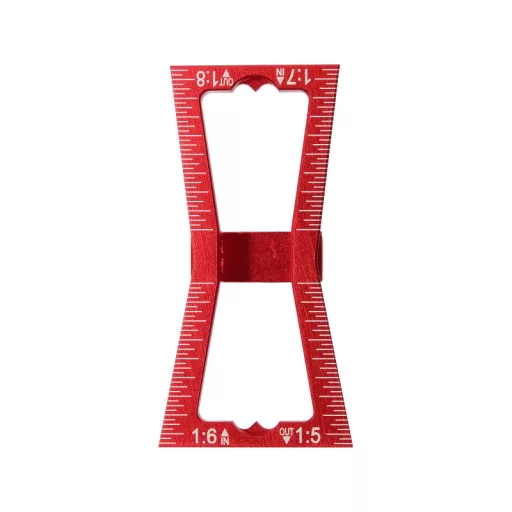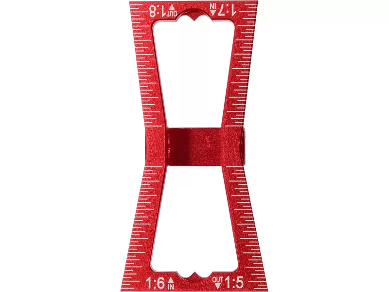 Carpentry template for making swallow tail connections in sizes 1: 5 and 1: 8. Made of metal with clear markings applied. It enables easy making precise characters on hard or soft wood. Saber dimensions 64 x 23 x 18 mm. To make connections of wooden elements on the so -called swallow tail.