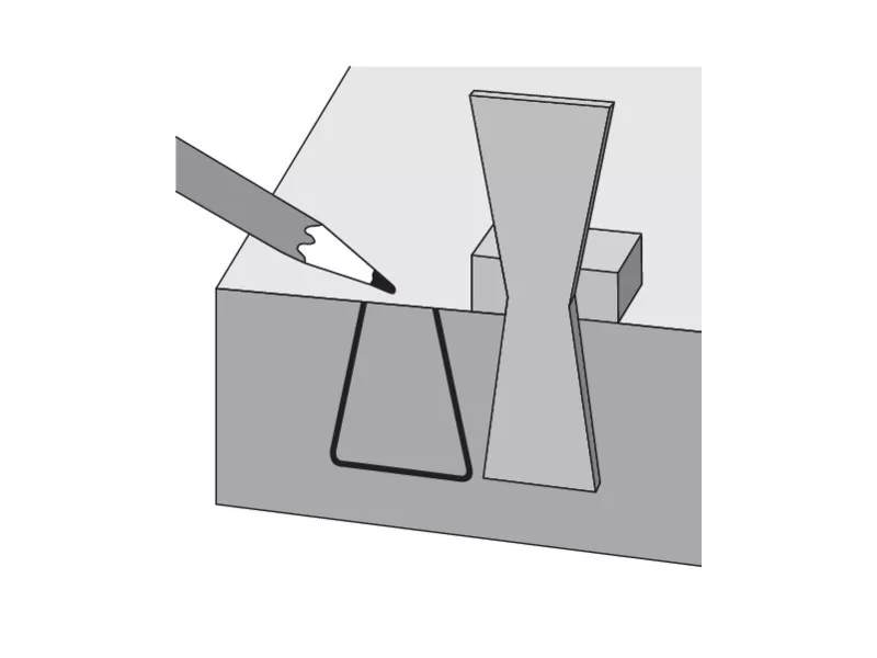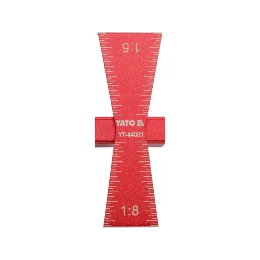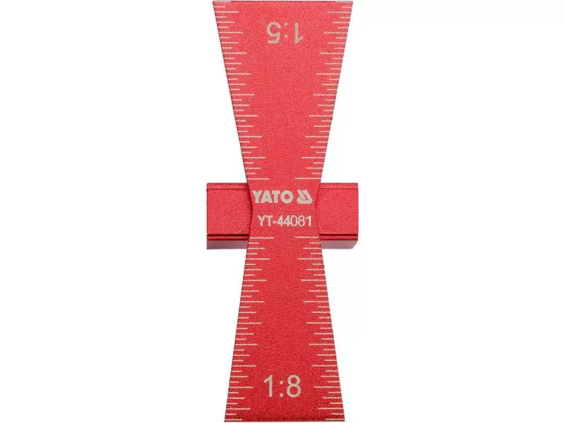 Carpentry template for making swallow tail connections in sizes 1: 5 and 1: 8. Made of metal with clear markings. The template provides easy making precise characters on hard or soft wood. Product dimensions: 64 x 23 x 18 mm. To make connections of wooden elements on the so -called swallow tail.