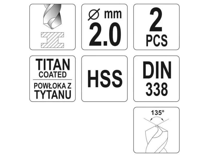 A ground drill with aggressive blade geometry. Thanks to the titanium nitride coating, it drains heat very efficiently and does not move when working in hard steel species. The blade attack angle of 135 ° allows drilling even without prior use of a point. Made according to the DIN 338 standard for professional applications in industry. A drill with a cylindrical handle designed for standard self -stacking drilling holders and key. High pressure resistance also allows the use of column and magnetic drills. Drilling in high -quality steel, including stainless, structural and cold rolled. Drilling without the need for scoring, thanks to the aggressive geometry of the blade. Quick heat dissipation allows you to work without the use of a cooling factor, without causing a drill burning.