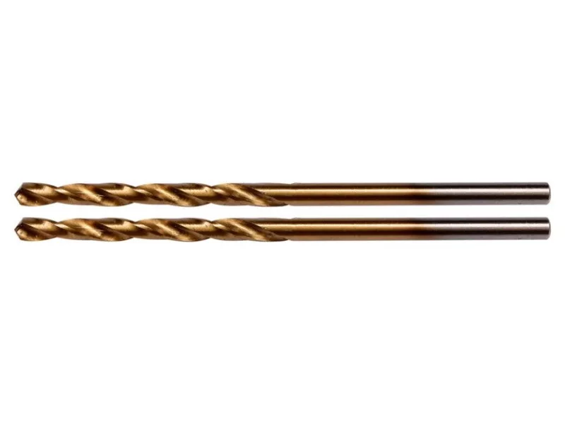 A ground drill with aggressive blade geometry. Thanks to the titanium nitride coating, it drains heat very efficiently and does not move when working in hard steel species. The blade attack angle of 135 ° allows drilling even without prior use of a point. Made according to the DIN 338 standard for professional applications in industry. A drill with a cylindrical handle designed for standard self -stacking drilling holders and key. High pressure resistance also allows the use of column and magnetic drills.