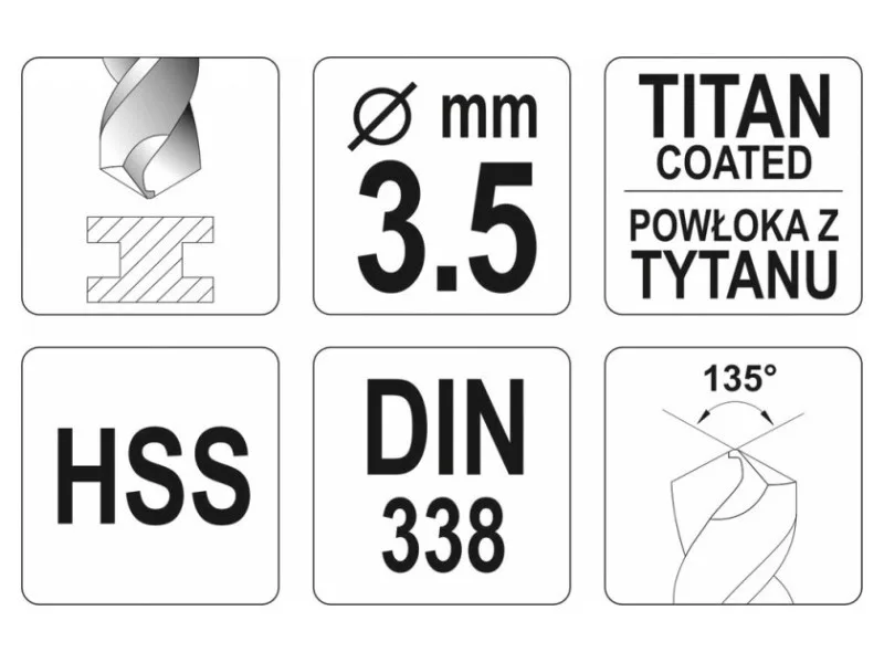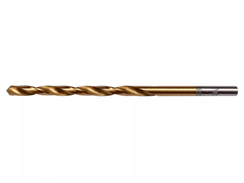 A ground drill with aggressive blade geometry. Thanks to the titanium nitride coating, it drains heat very efficiently and does not move when working in hard steel species. The blade attack angle of 135 ° allows drilling even without prior use of a point. Made according to the DIN 338 standard for professional applications in industry. A drill with a cylindrical handle designed for standard self -stacking drilling holders and key. High pressure resistance also allows the use of column and magnetic drills.