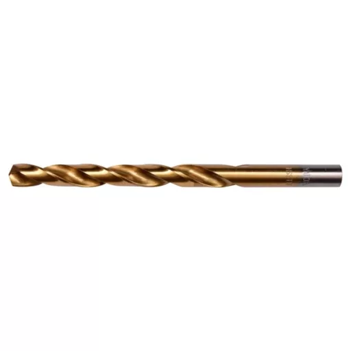 A ground drill with aggressive blade geometry. Thanks to the titanium nitride coating, it drains heat very efficiently and does not move when working in hard steel species. The blade attack angle of 135 ° allows drilling even without prior use of a point. Made according to the DIN 338 standard for professional applications in industry. A drill with a cylindrical handle designed for standard self -stacking drilling holders and key. High pressure resistance also allows the use of column and magnetic drills.