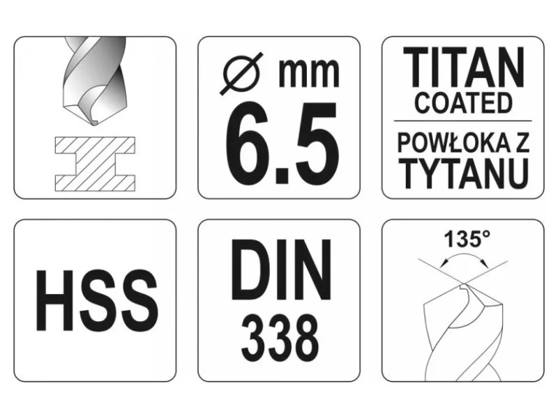 YATO Spiralbohrer 6,5 x 101/63 mm HSS-TiN YATO Spiralbohrer 6,5 x 101/63 mm HSS-TiN